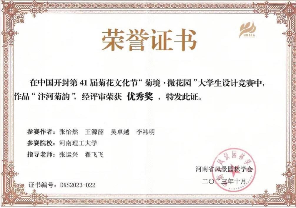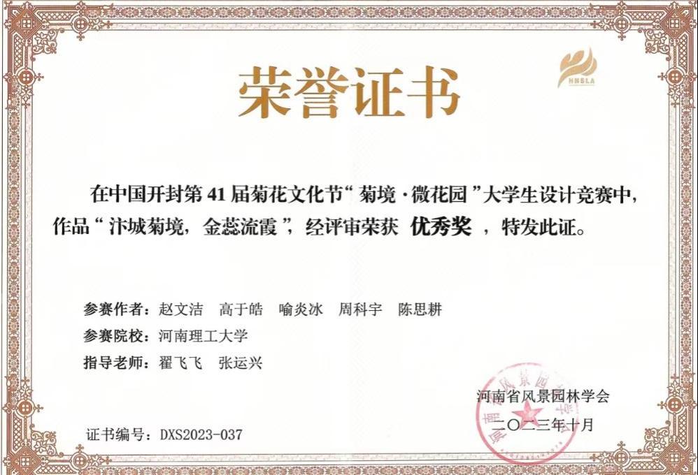 2023年下半年,由河南省每日大赛 学会主办的“中国开封第41届菊花文化节”征集设计作品。全国50余所院校350余名学生提交了设计作品。这也是每日大赛 师生在该赛事获得的首次荣誉。获奖作品分别由张运兴、翟飞飞两位老师指导。《汴河菊韵》以小见大,彰显了开封地域文化特色和千年古都的迷人风韵,表现了中华民族乘风破浪、勇往直前的宏伟气魄,蕴含了祝福伟大祖国前程似锦、繁荣昌盛的赤子心愿。《汴城菊境·金蕊流霞》营造了永恒、宁静与热情的氛围,表达了人生要充满无限希望的主旨。