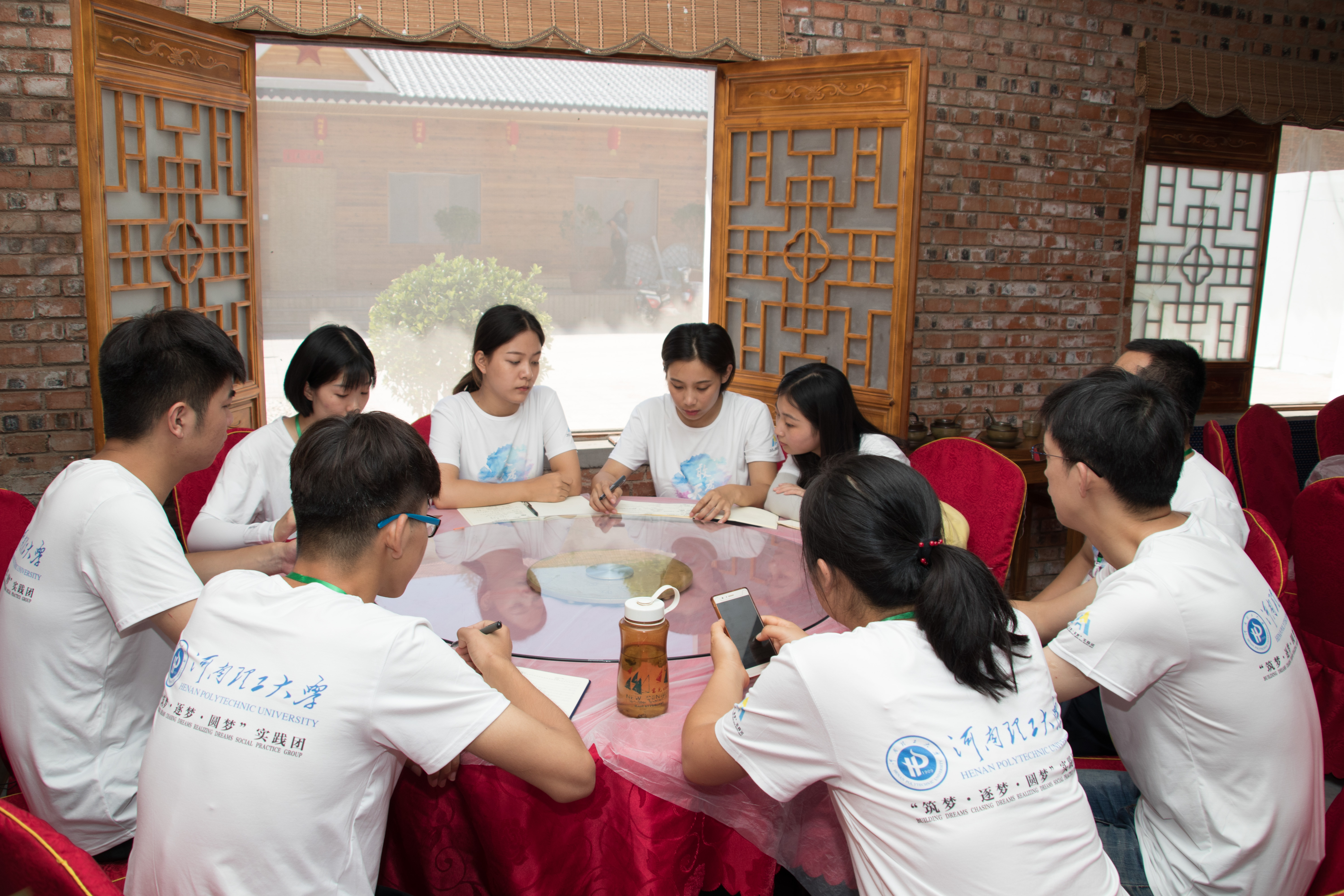 在晋的“筑梦·逐梦·圆梦”实践团队。会上,带队老师金欢结合两天来的调查摸底情况,对乡村资源优化整合、村容村貌改观、文化产品衍生等几方面进行了说明和汇报。各级领导对实践团队开展的实践情况表示高度赞许,鼓励支持以视觉印象为起点对三里湾进行相关规划开发。