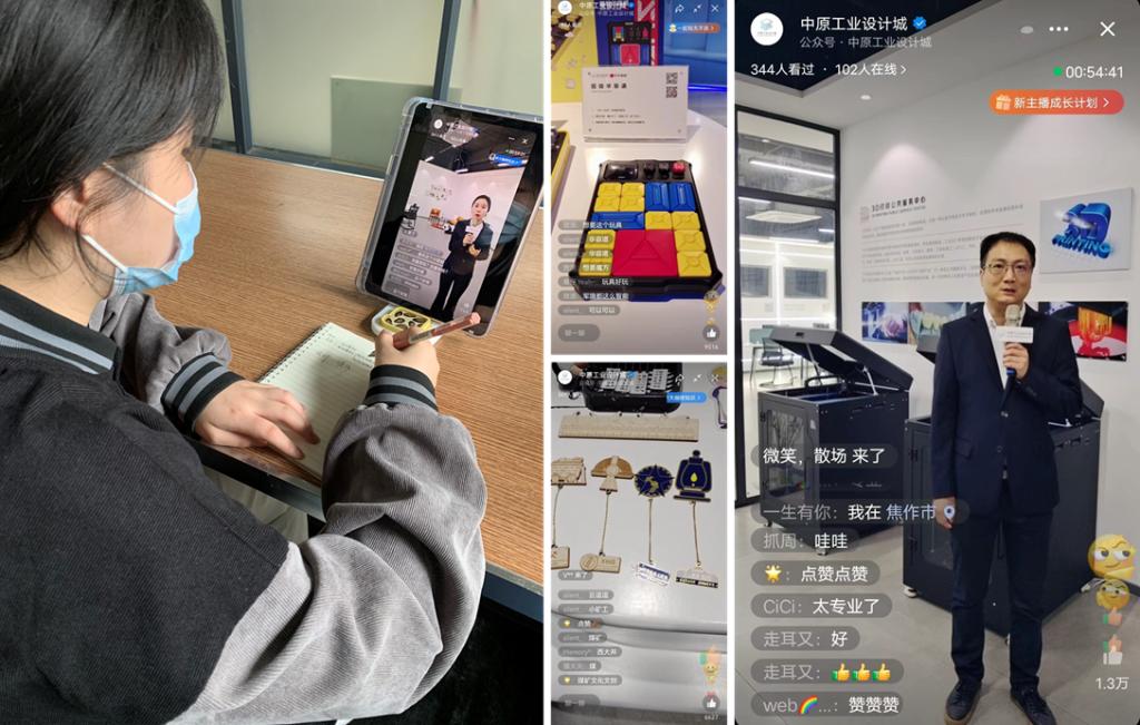 在近90分钟的直播活动中,同学们一起参观了设计城展厅、众创空间、始豫设计工作室、3D打印公共服务中心。通过直播镜头同学们全面了解中原工业设计园区的建设情况及工业设计的发展趋势。直播中同学们踊跃留言,点赞互动显示出了对这场新颖、独特、高效直播活动的喜爱。组织此次活动的老师表示后续还安排有“设计校友说”、“设计产业说”、“设计创业说”等多个直播模块的教学活动,将“直播看设计”作为疫情下设计专业实习教学的“新路子”。