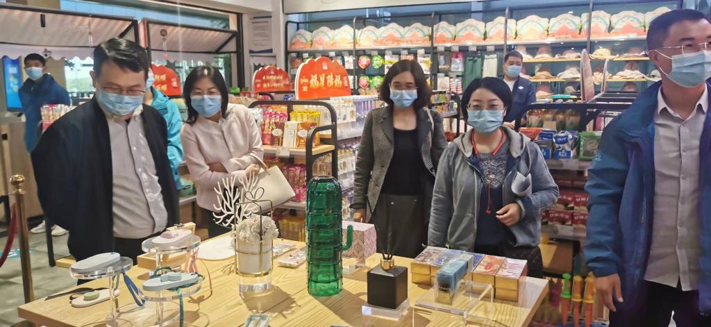 团队参观考察了云台山游客中心的文创产品商店和游客服务中心,对云台山文创产品的设计和创新提出了合理化建议,也对景区服务设施和服务体系进行了深入的了解。