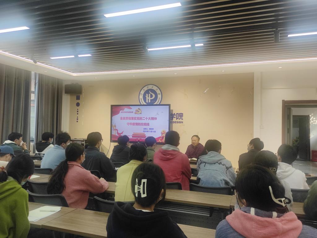 二楼会议室为学生开展两场“全面贯彻落实党的二十大精神,守牢疫情防控底线”思政课。建筑学2020级同学参加了学习。