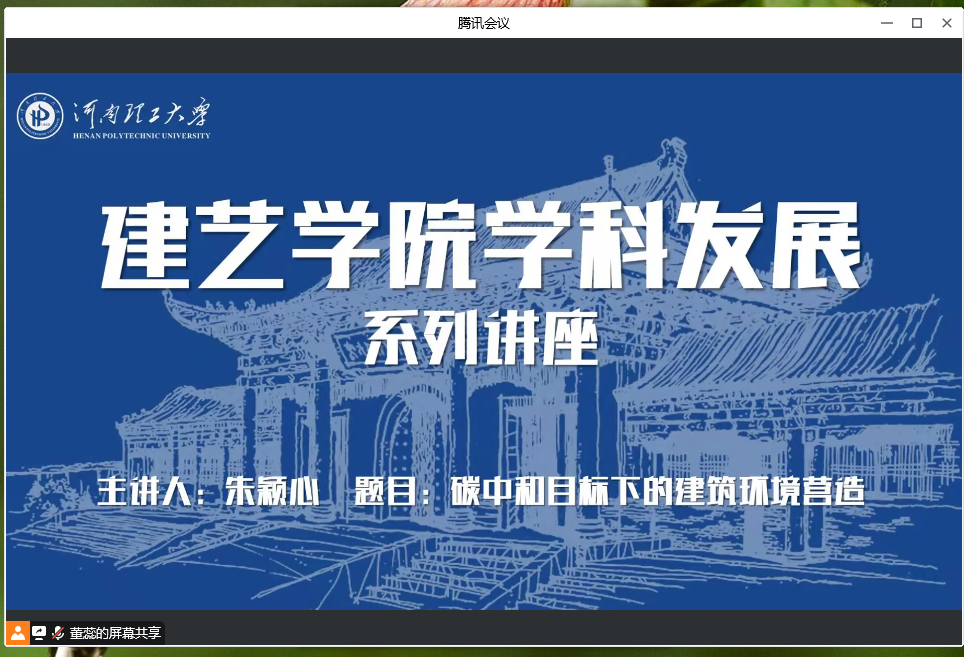 邀请,通过腾讯会议为学校师生作了题为《碳中和目标下的建筑环境营造》的学术报告。200余名师生聆听了本次报告并积极参与讨论,报告会由该院副院长闫海燕主持。