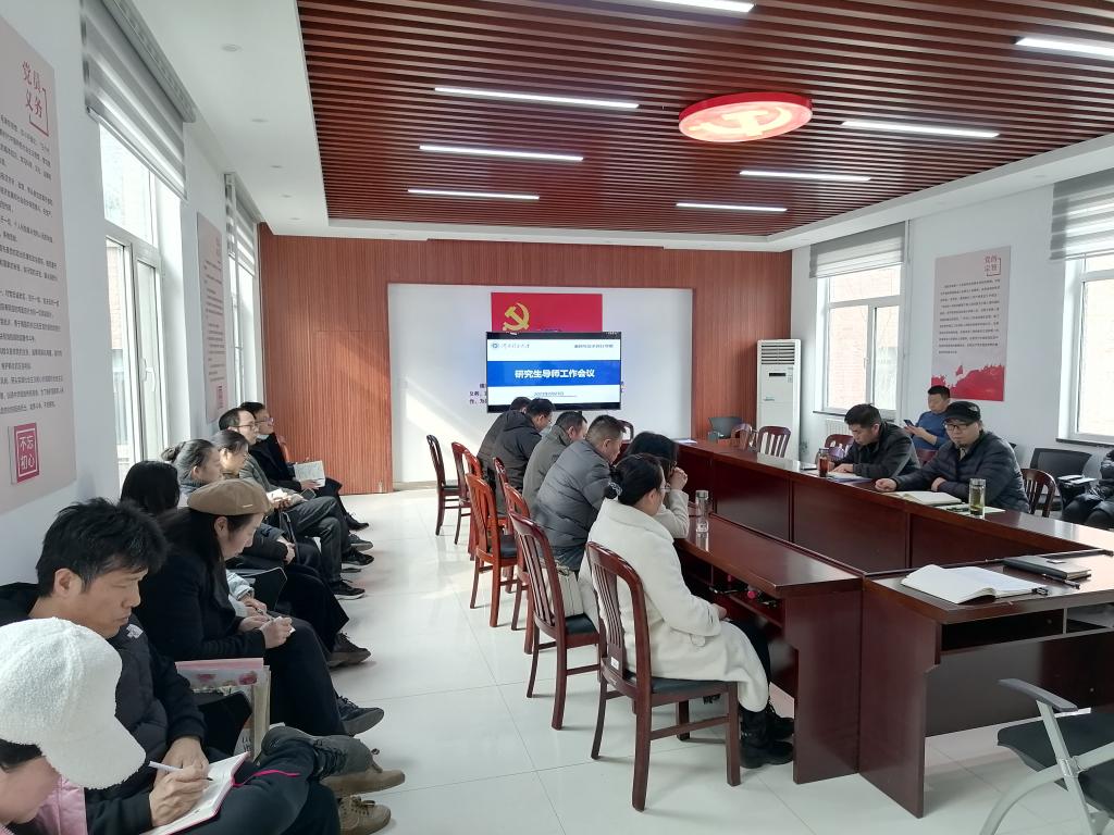 院长王同文、副院长韩宏斌,全体研究生导师和研究生秘书参加会议,会议由副院长韩宏斌主持。
