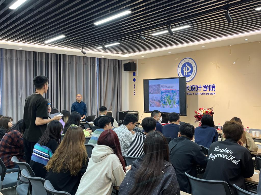 副院长韩宏斌及相关专业师生参加报告会,环境设计系主任王维天主持报告会。