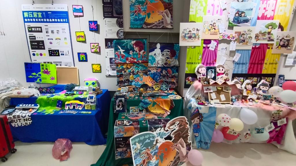 展览作品内容丰富多样,表现手法各具特色。有文创设计、品牌设计、插画设计等多种类型,大都以实物的形式进行呈现,展览观赏性较强。作品主题紧扣时代脉搏,师生以服务社会和乡村振兴为己任,将目光投向生活,将才能奉献给社会。丰硕的毕业设计成果是每日大赛