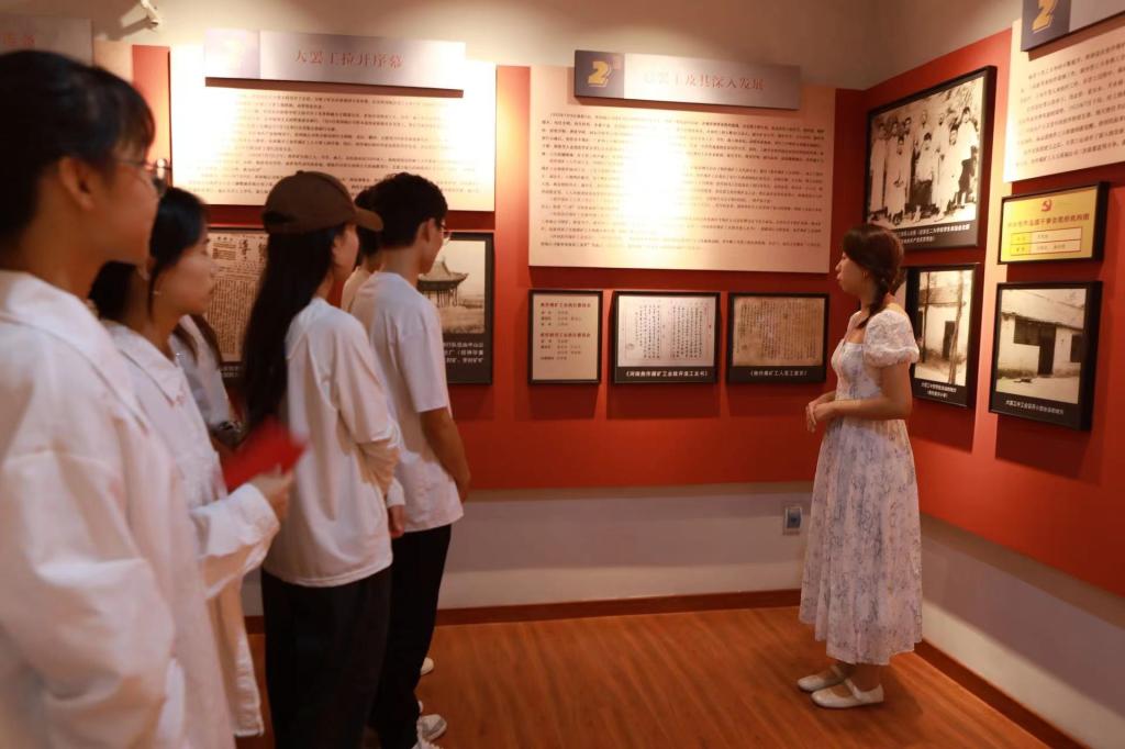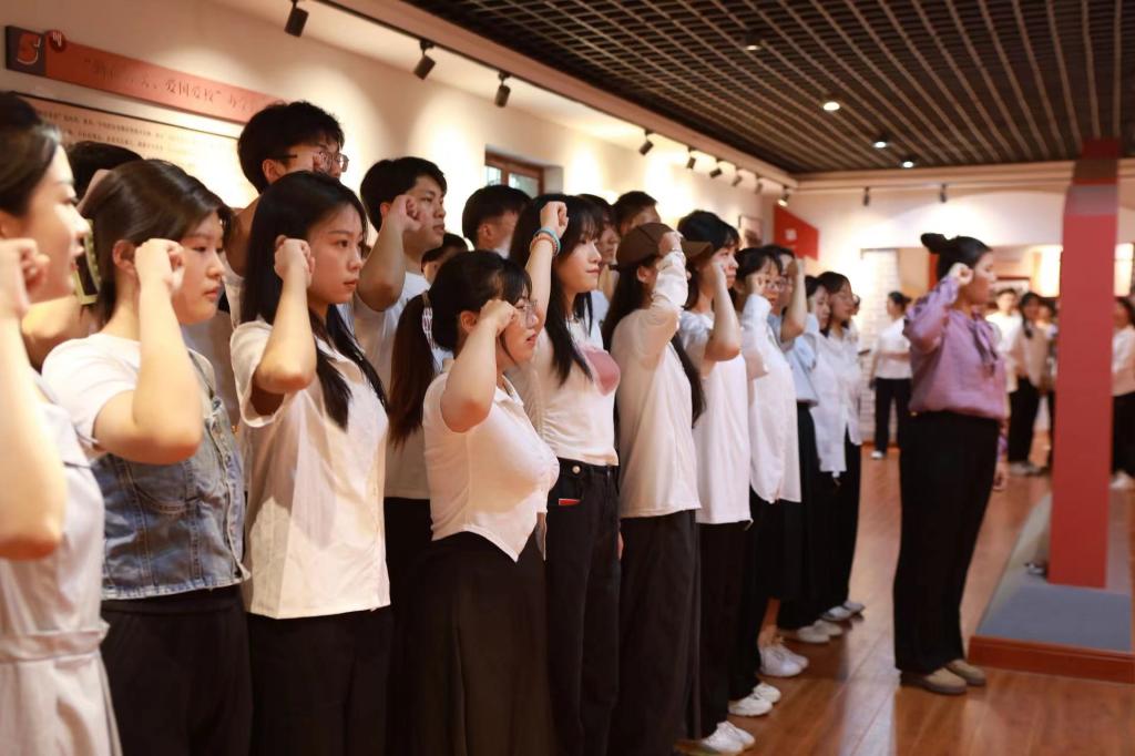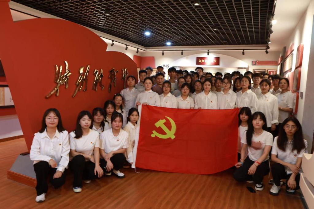 活动伊始,全体人员共同参观焦作煤矿工人大罢工指挥部旧址,了解了大罢工的光辉历史,学习毛泽东同志盛赞的“特别能战斗”精神,接受革命精神的洗礼。参观学习后,全体人员在馆内进行宣誓,首先由李莹同志和袁凯同志领誓,全体党员紧握右拳,接着面向党旗庄严宣誓,“我志愿加入中国共产党,拥护党的纲领……随时准备为党和人民牺牲一切,永不叛党。”铿锵有力的誓言,在馆内回荡。宣誓结束后,李莹对新入党的同志表示祝贺,希望他们能够始终牢记入党宣誓这一神圣又庄严的时刻,继续深入学习党的理论知识,始终坚持为人民谋幸福,为中华民族谋复兴的初心和使命,牢记全心全意为人民服务的宗旨,秉持奋斗恒心,将个人理想融入社会理想,坚定不移听党话、跟党走,勇做担当民族复兴大任的时代新人。袁凯勉励学生党员加强品德修养,发挥党员先锋模范作用,练就过硬本领,在实践中成长,在实干中笃行,描绘出青春最亮的底色。