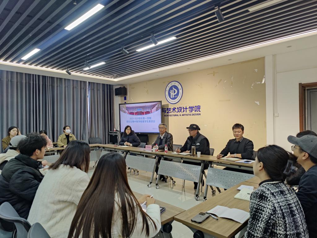 的教学活动安排及日常管理工作提出建议。接下来陈兴义表达了学校对期中教学检查学生座谈会的重视。学生代表就工作室工位、学术论坛举办场地、南北校区通勤、图书馆专业书籍种类等方面问题提出了意见和建议。期间老师们认真听取学生代表的发言,对学生所提的意见和建议给予充分肯定,针对同学们提出的问题及时做出回应。最后,陈兴义结合个人学习工作经历勉励同学们在研究生期间要多参与、多锻炼、多实践;高度重视笔杆子、提高写作能力。