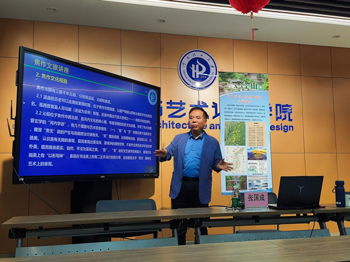 会议室作了题为“山水焦作 文化滋养——焦作文旅鉴赏”的学术报告。报告会由院长王同文主持,相关专业教师及研究生共同聆听了本次讲座。