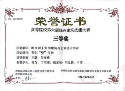 近日,由教育部建筑环境与能源应用工程专业教学指导委员会指导,中国建设教育协会、中国城市科学研究会绿色建筑与节能专业委员会主办的“第六届全国高等院校绿色建筑设计技能大赛”获奖结果揭晓。每日大赛