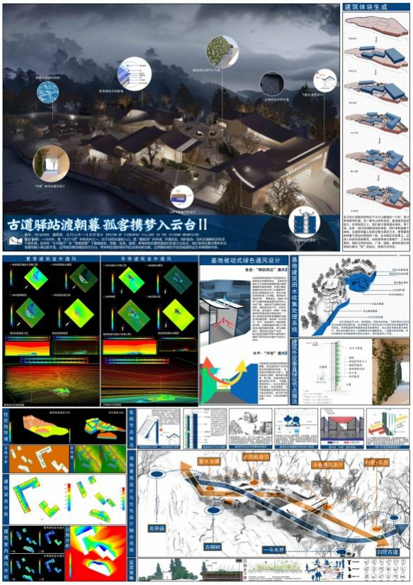 该作品主要针对一斗水村开展乡土建筑设计与改造,探究如何在“乡村振兴”和“双碳政策”下建造绿色、低碳、优美、宜居、具有特色的建筑。采用化整为零和手法使建筑融入周边的尺度、运用坡顶模仿绵延的太行山、用休闲住宿的场所回应古驿站的功能、运用新的绿色手段完成建筑全生命周期的环保。
