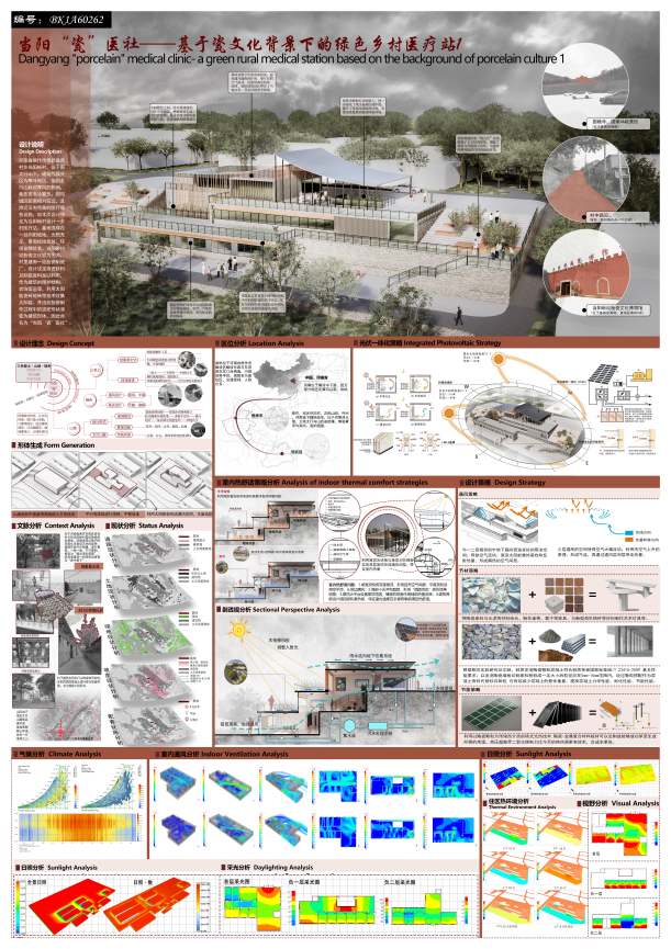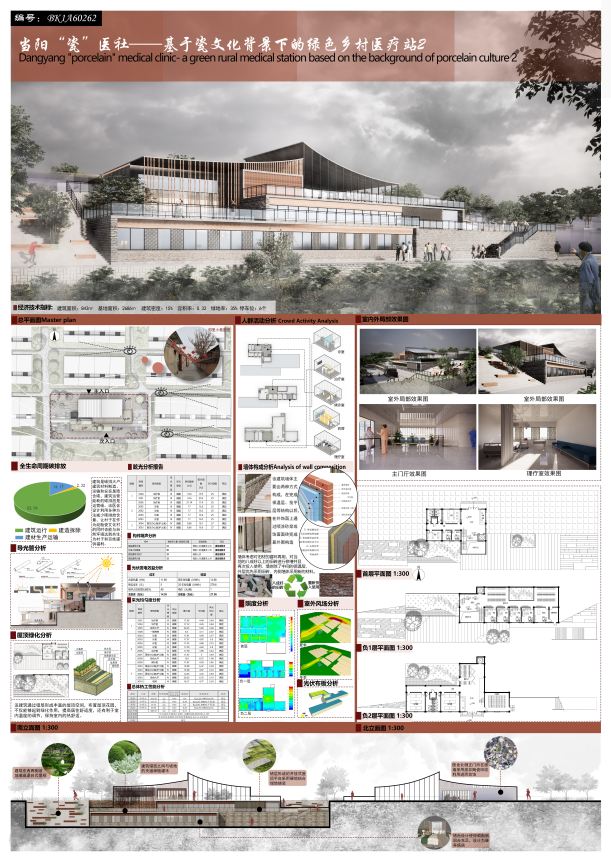 该作品选址于修武县西村乡当阳峪村,在功能配置上填补附近地区医疗服务设施的空白;在绿建设计上将瓷材料及制瓷废料加以利用,作为建筑的围护结构、装饰面层等,能够充分体现乡土地域特色,同时利用太阳能瓷砖地砖等技术收集太阳能来实现绿色低碳环保。