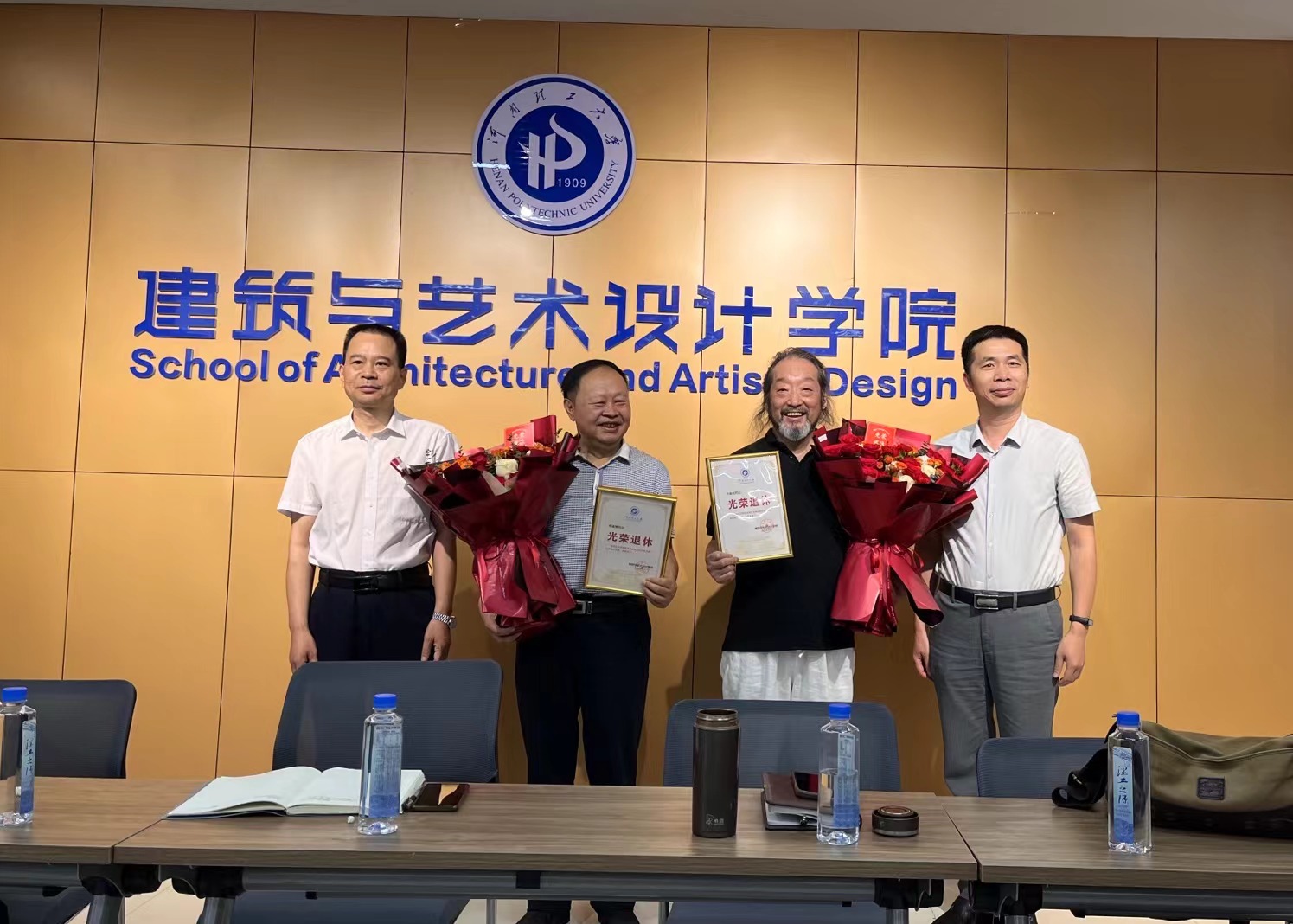 在二楼会议室为2024年上半年退休的杨富卿、亢春光两位老师举办集体荣休仪式。学院领导班子以及系室负责人、教师代表参加仪式。仪式由党委副书记张明主持。