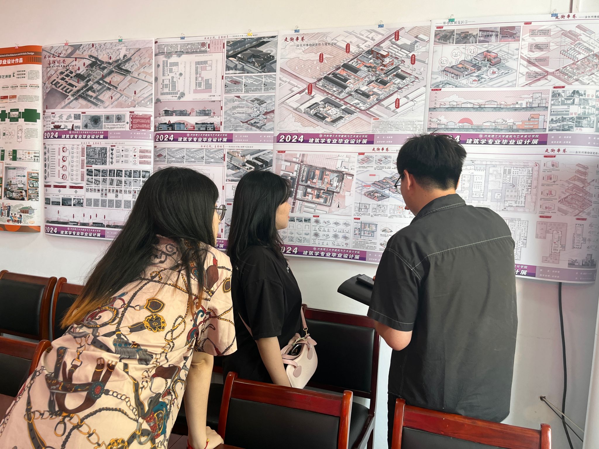2024年乡村联合设计与实践成果展评活动。陈兴义教授、闫海燕教授、庄昭奎老师、王海涛老师,建筑学、城乡规划学、产品设计、环境设计、视觉传达、旅游管理等专业二十余名师生参加了此次成果展评活动。