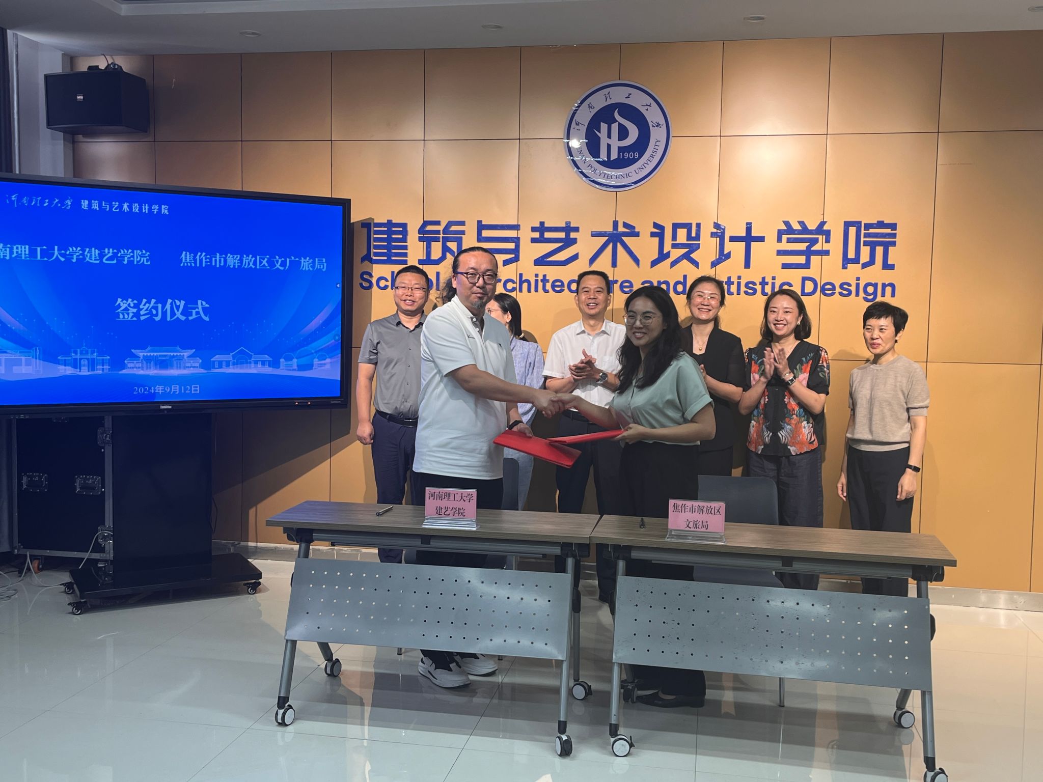 与焦作市解放区文化广电和旅游局交流座谈会暨“产教学创研”立体化实践平台建设签约仪式在每日大赛