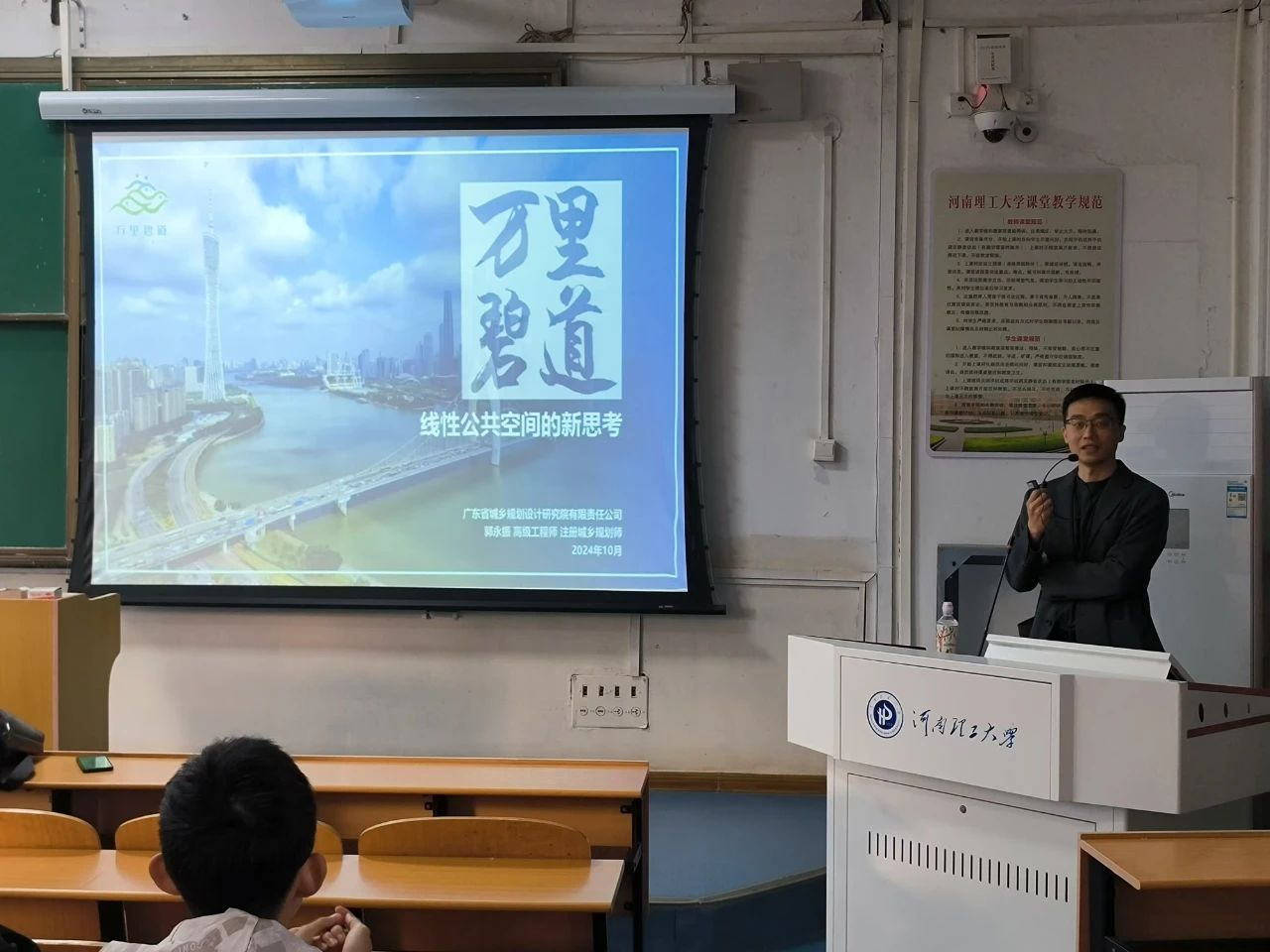 报告会伊始,李山勇对郭永振进行介绍,并对郭永振的到来表示热烈欢迎,郭永振真挚地感谢母校对自己的悉心栽培,聚焦“万里碧道—线性公共空间的新思考”这一主题,从学生身边的例子入手,引发同学们对身边地域空间的思考,并与同学们进行深入交流。随后以广东为例,讲解了水系规划和治理的问题,拓展同学们的知识面,引导同学们系统性思考问题。随后,他通过自己的社会工作经验,向同学们分享自己的职业发展路径和行业发展趋势,鼓励同学们要有自己的思路和见解,关注社会需求,敢于梦想,敢于实践,循序渐进,不断提升自己的综合素质和创新能力。