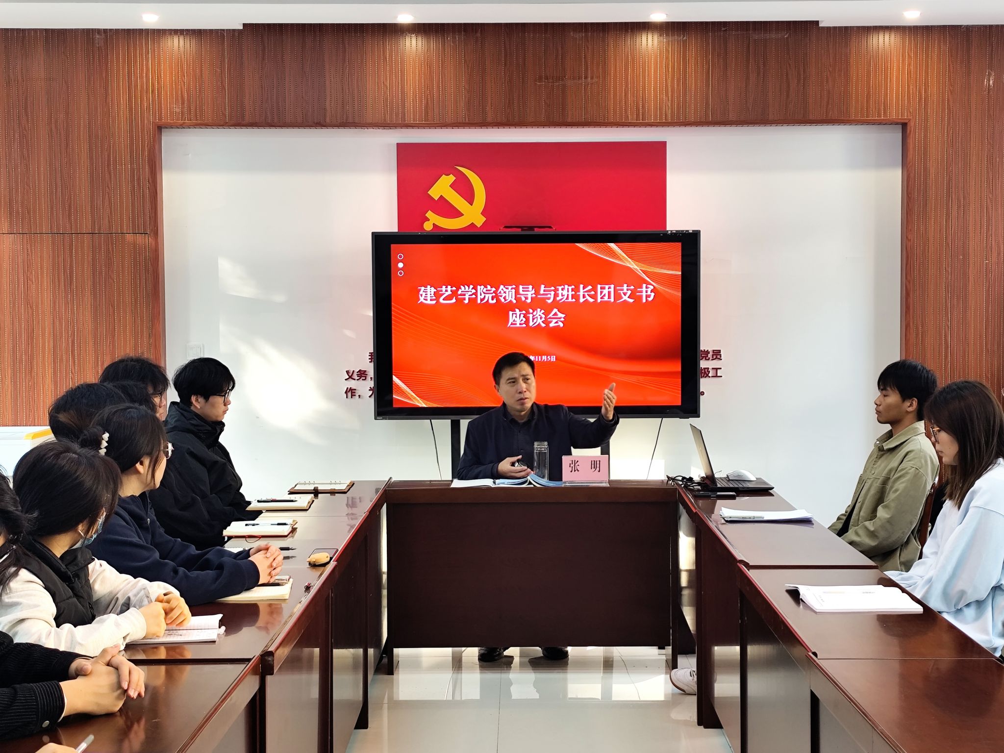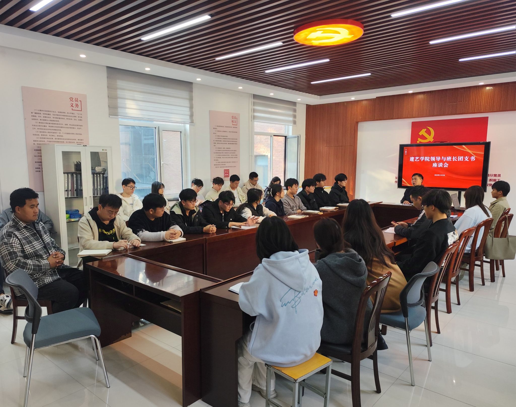 在党建会议室开展院领导与班长团支书座谈会。座谈会由院学工办副主任金欢主持,院党委副书记张明、2020级、2021级和2022级班长团支书40余人参加了座谈。