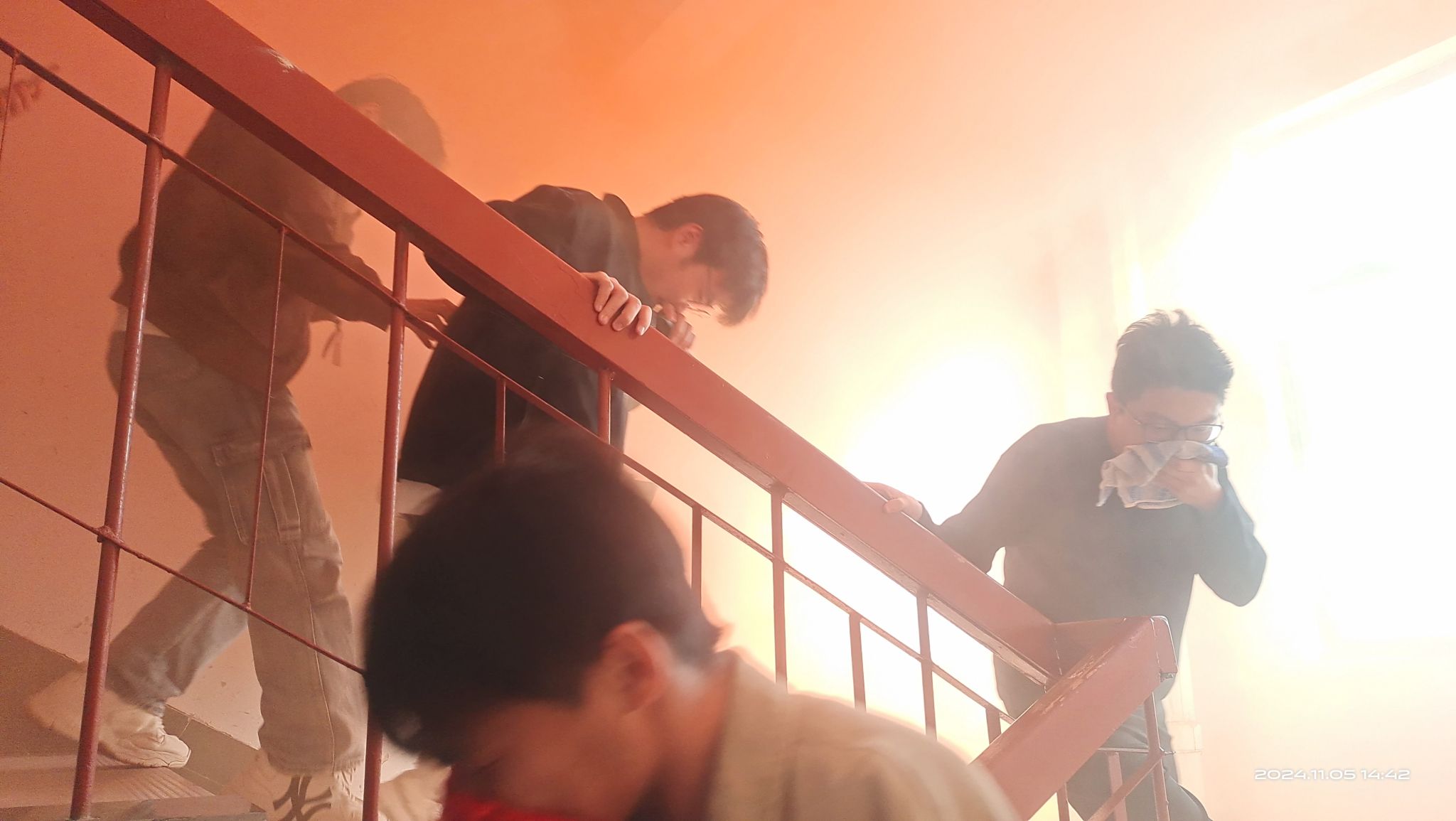 开展秋冬季消防演练活动。演练活动在北校区5号宿舍楼和8号宿舍楼同时进行,每日大赛
