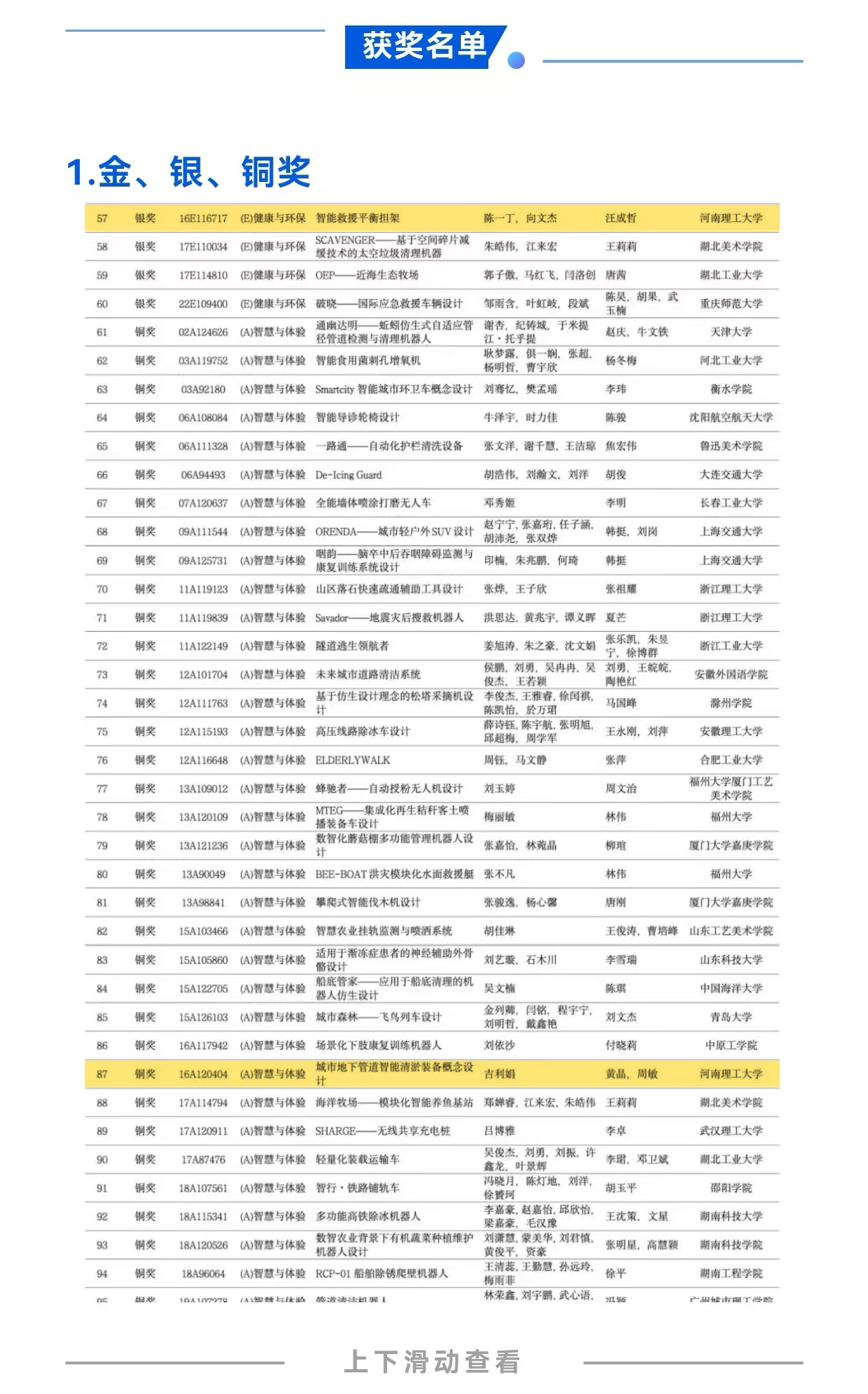 教师汪成哲指导,学生陈一丁、向文杰参赛的《智能救援平衡担架》荣获银奖,由教师黄晶、周敏指导,学生吉利娟参赛的《城市地下管道智能清淤装备概念设计》荣获铜奖。