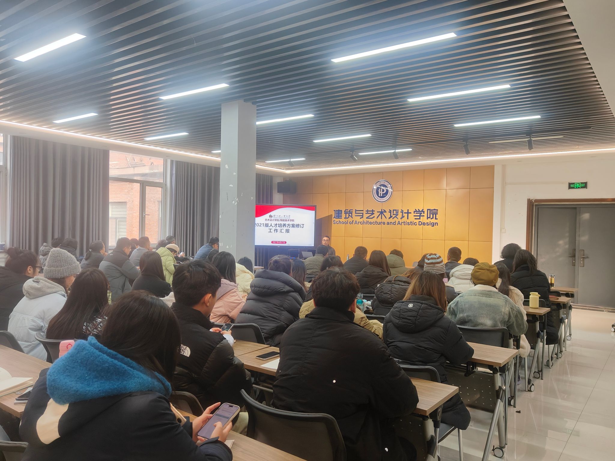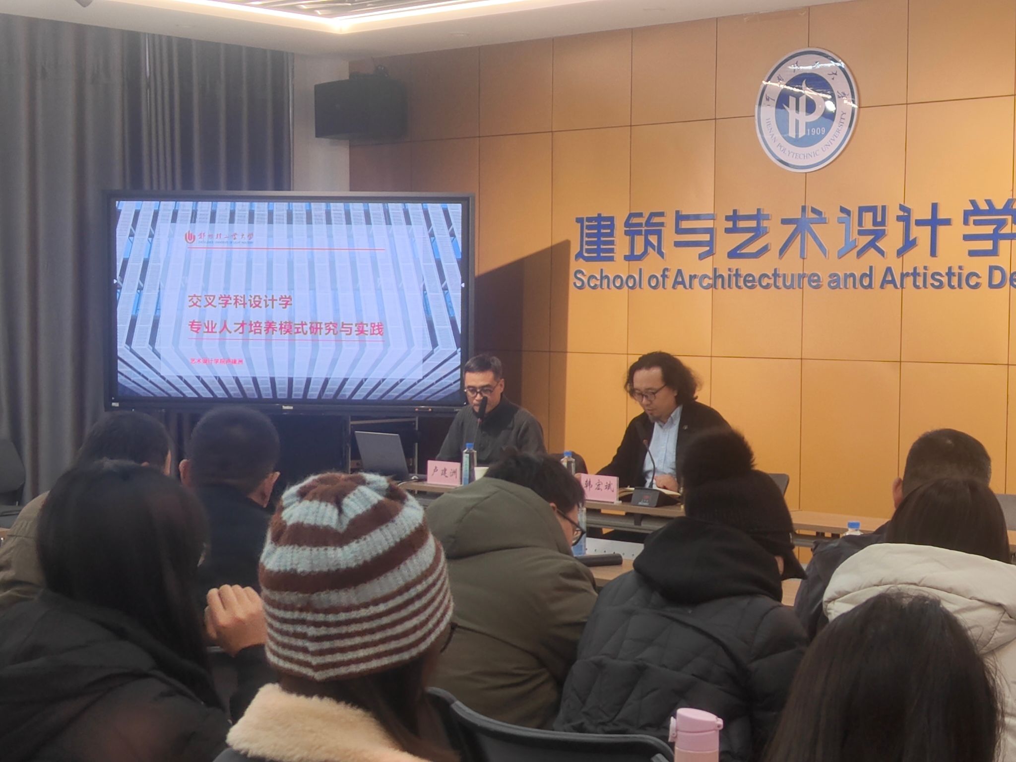 副院长卢建洲,就“交叉学科设计学的人才培养模式研究与实践”这一主题进行专题讲座。此次讲座由副院长韩宏斌主持,视觉传达设计、环境设计、工业设计等相关专业教师,以及2023级和2024级设计专业的全体研究生共同参与。