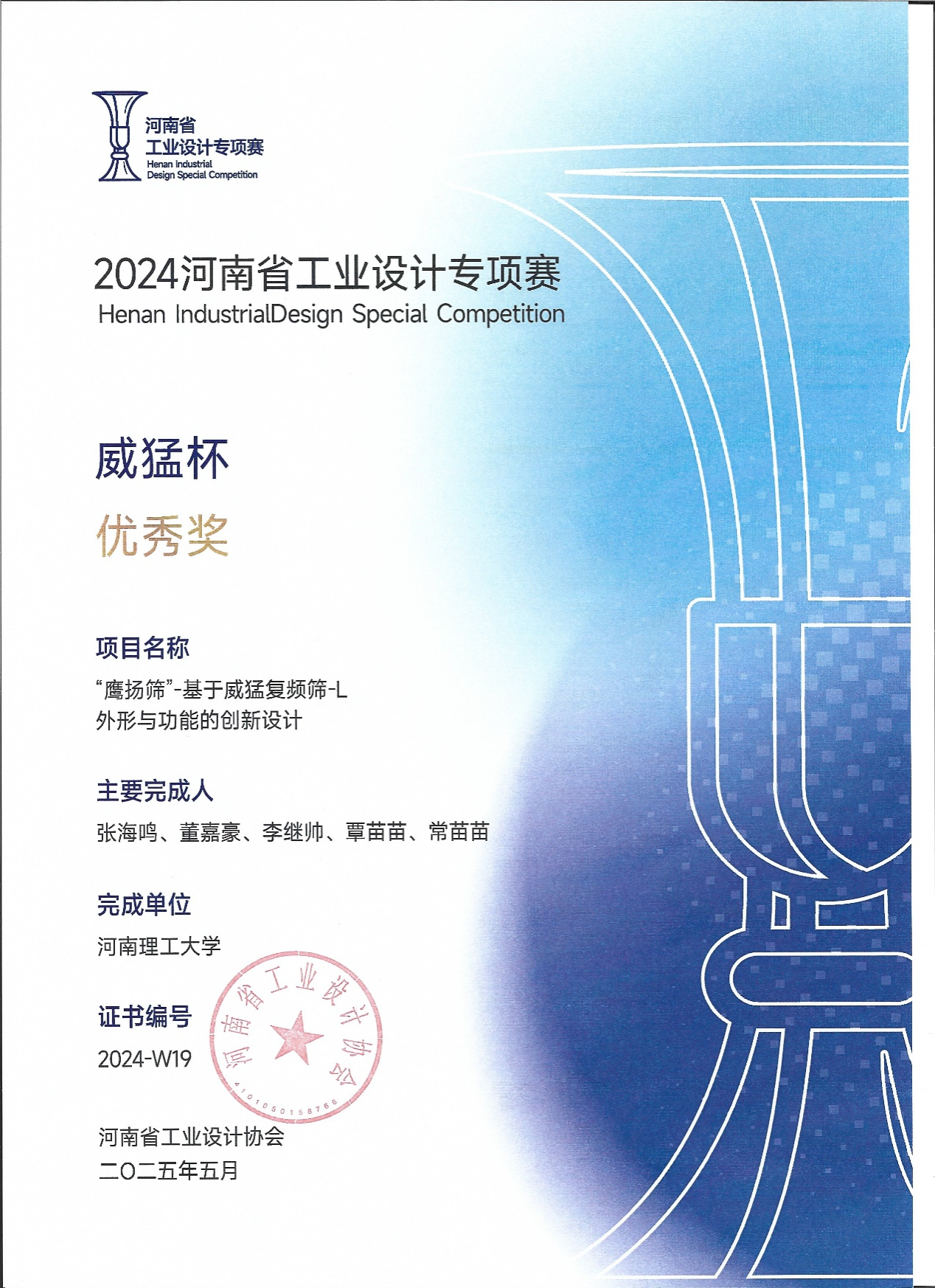 2025年5月15日,由河南省工业和信息化厅指导,河南省工业设计协会、安阳市工业和信息化局、新乡市工业和信息化局主办的首届河南省工业设计专项赛颁奖仪式在安阳康复设备产业园成功举办。